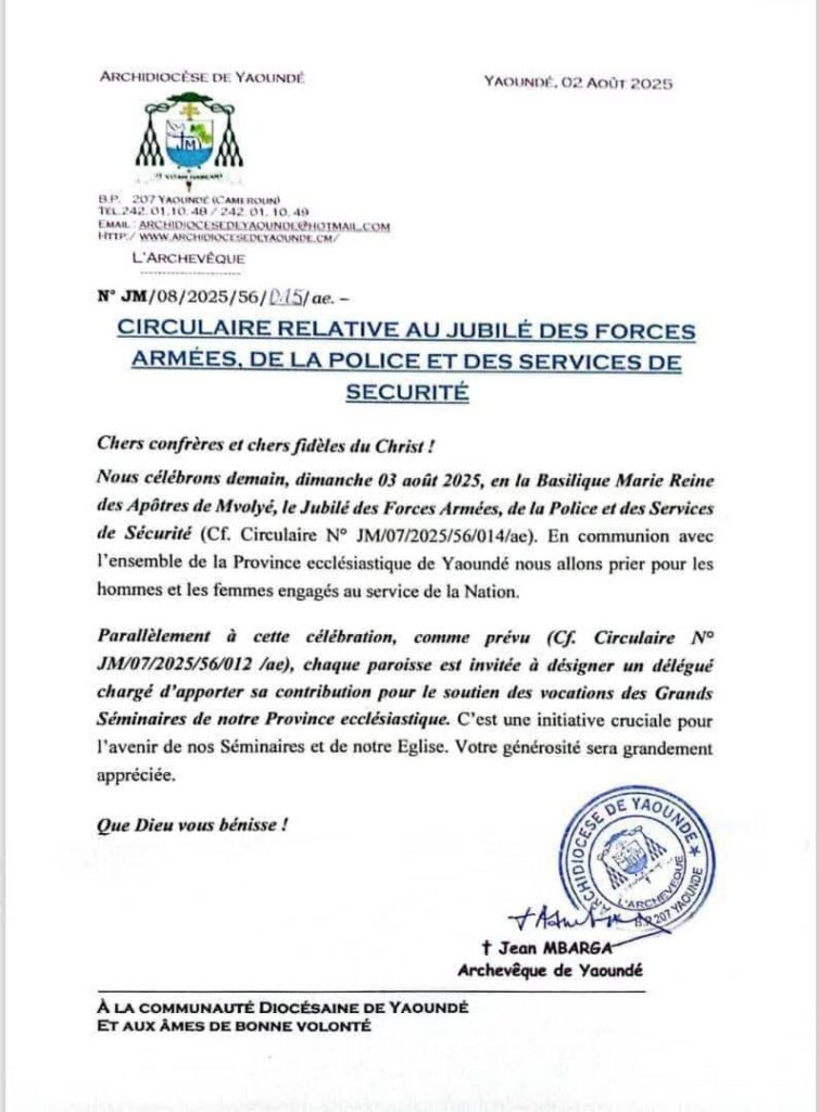 Selon Monseigneur Jean Mbarga, Archevêque de Yaoundé, cette célébration a été l’occasion de prier pour les hommes et les femmes qui servent la nation et de demander pardon pour les fautes commises.