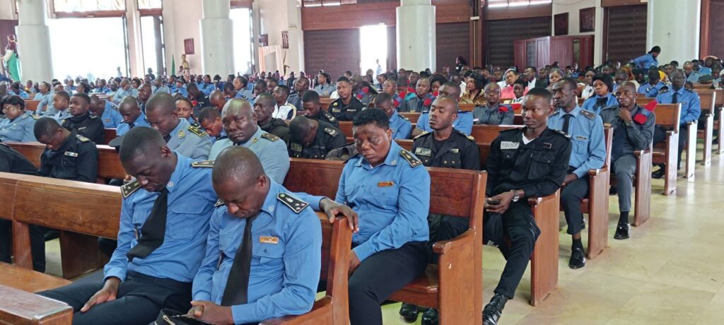 Les forces de l’ordre étaient nombreuses à la Basilique Marie Reine des Apôtres de Mvolyé ce dimanche matin pour une messe organisée dans le cadre du Jubilé des forces armées, de la police et des services de sécurité.