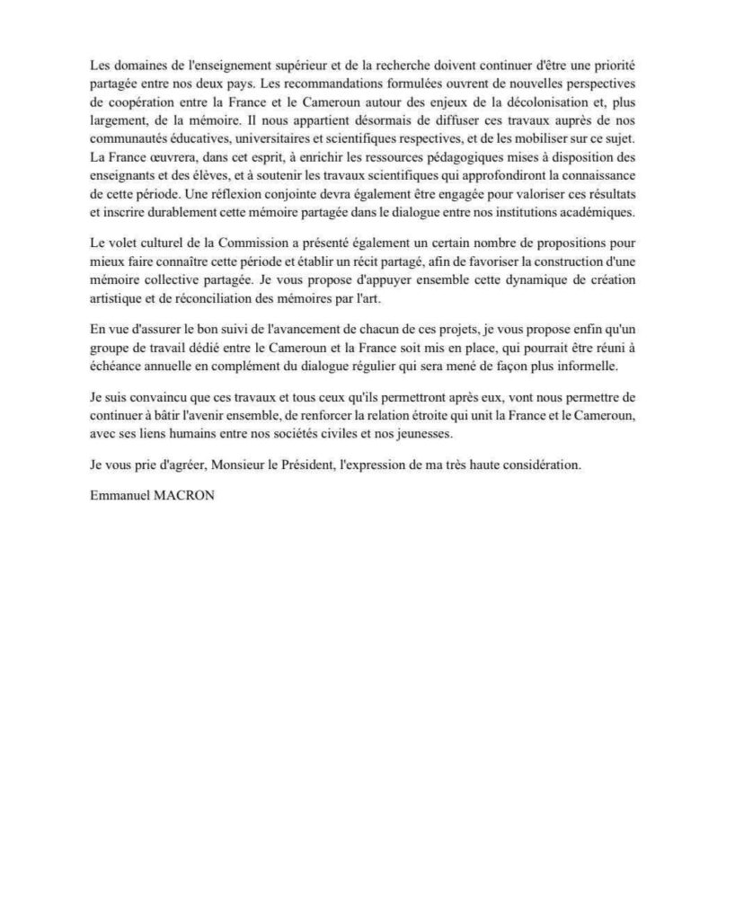 Dans cette correspondance, le président français reconnaît la guerre menée par la France au Cameroun, notamment contre les résistants et les indépendantistes.
